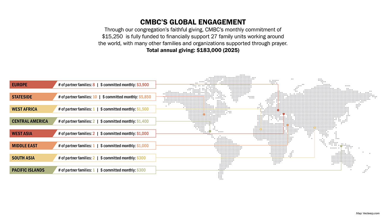 We take seriously the privilege of supporting our global partners in prayer. Updates and requests are published each Wednesday on the Intercessor prayer sheet and on a bulletin insert on the 4th Sunday of each month. If you would like to receive more regular or direct updates from any Global Partner we support, please contact Deb Masters, our Global Ministries Correspondent, and she will help you get connected.
